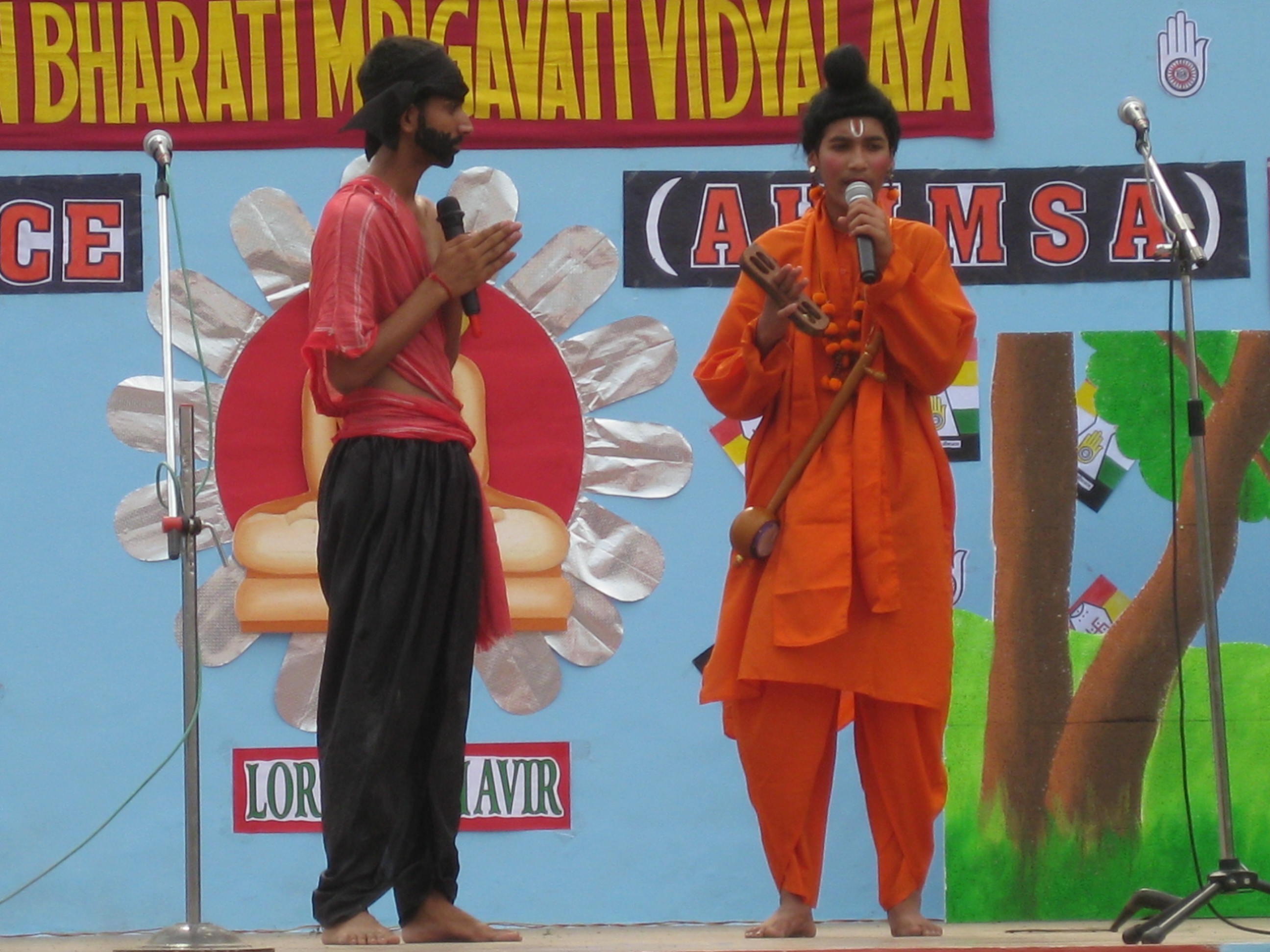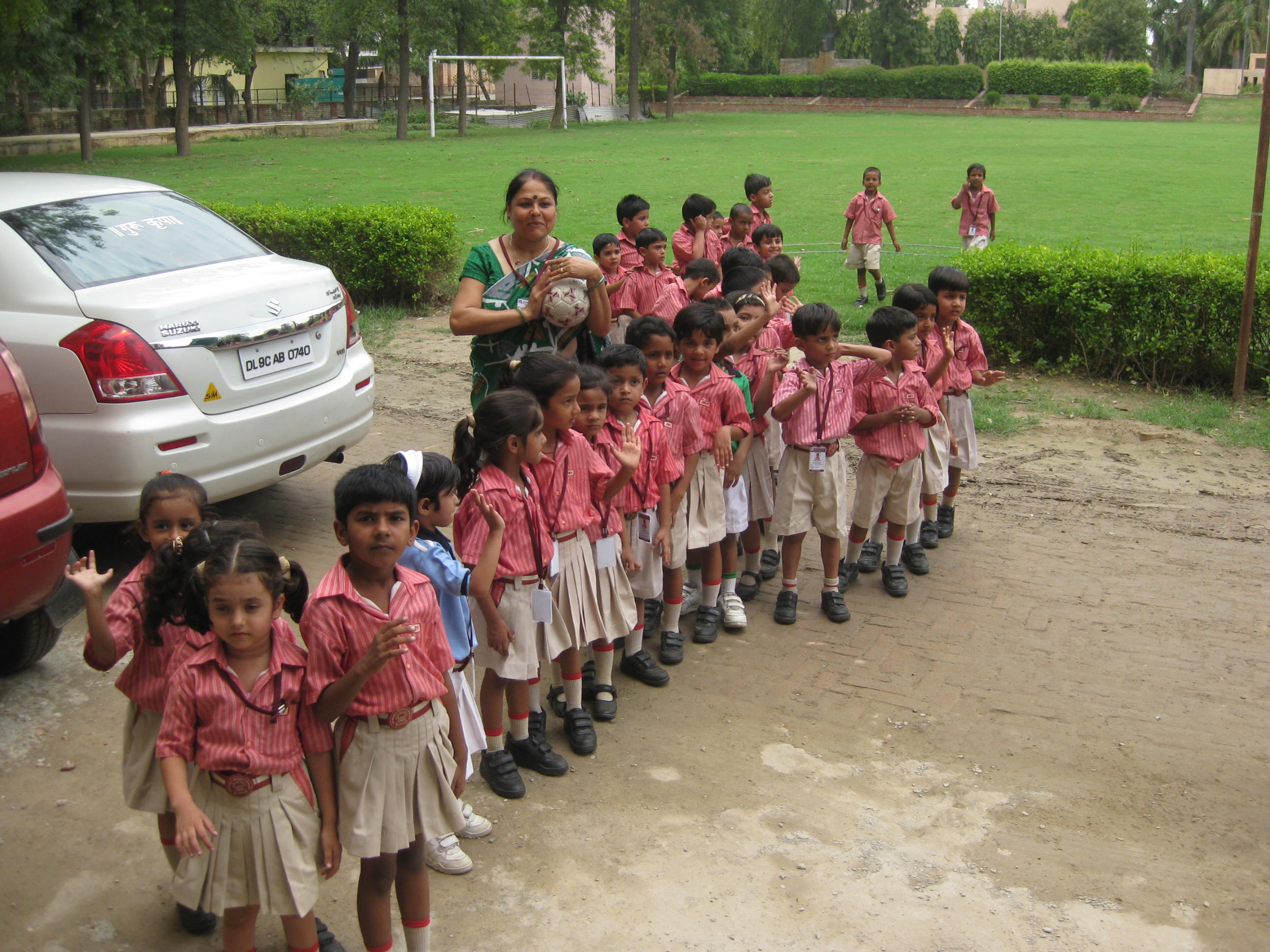 We arrived at the second school, The Mahavira Senior Model School, which is a private school run by Jains, but the students population is 30% Jains, and 70% other. There was a beautiful sign in the entry welcoming us  Image and we were each greeted with a bindhi mark on our foreheads. Image