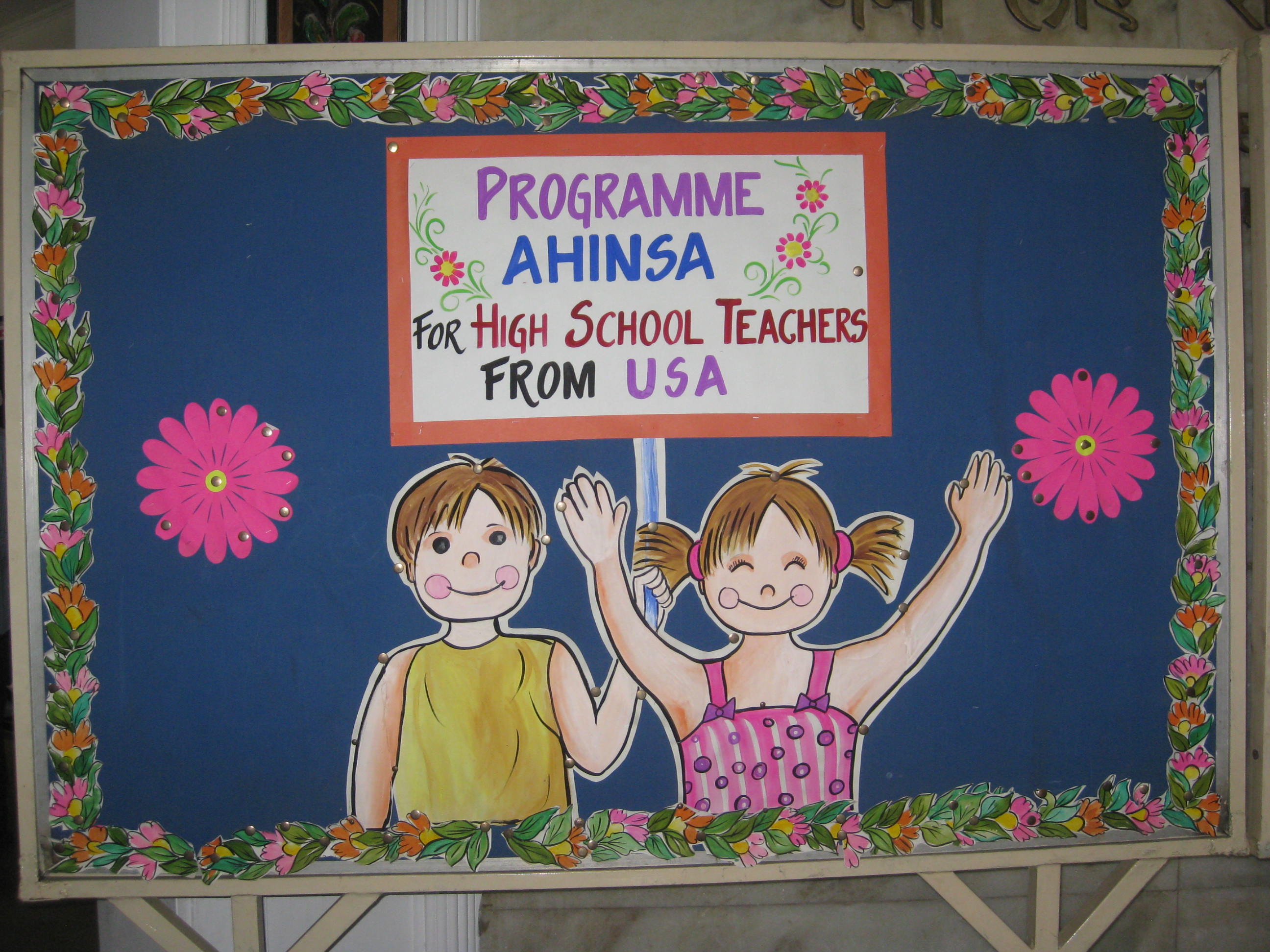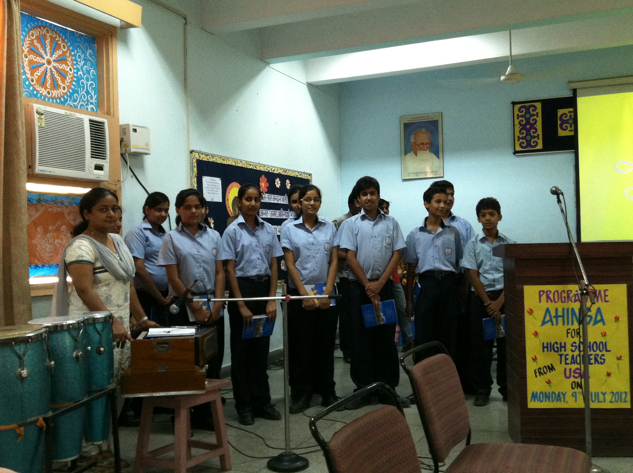We were brought up to a meeting room where some students performed songs about ahimsa,Image followed by a dialogue with teachers.  We asked them how they teach nonviolence to their students, and they asked us questions about challenges of dealing with the types of violence we face in American schools.  We went for a tour of the school and one of the highlights was the medicinal garden run by the school to help cultivate the ahimsa principle of community.Image