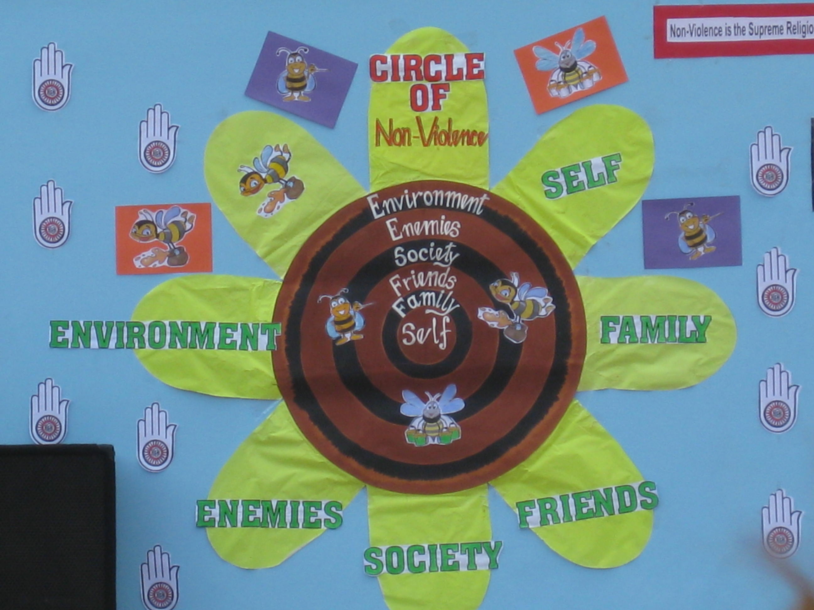 Today we left the “compound” we’d been staying at for the first week of our trip and we made our way to a new part of Delhi.  On the way we made some school visits to find out from teachers how they teach/use ahimsa (nonviolence) in their schools. The first school we stopped at was Hira Lal Jain Secondary School.  It is located in one of the most impoverished areas of Delhi and was created by the Jain Society to offer free, quality education to the students in this neighborhood. Here are some photos from that school: